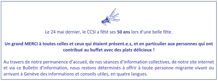 Le CCSI organise régulièrement des séances d’information gratuites en plusieurs langues et sur divers thèmes, qui sont ouvertes à toutes et tous sans inscription.