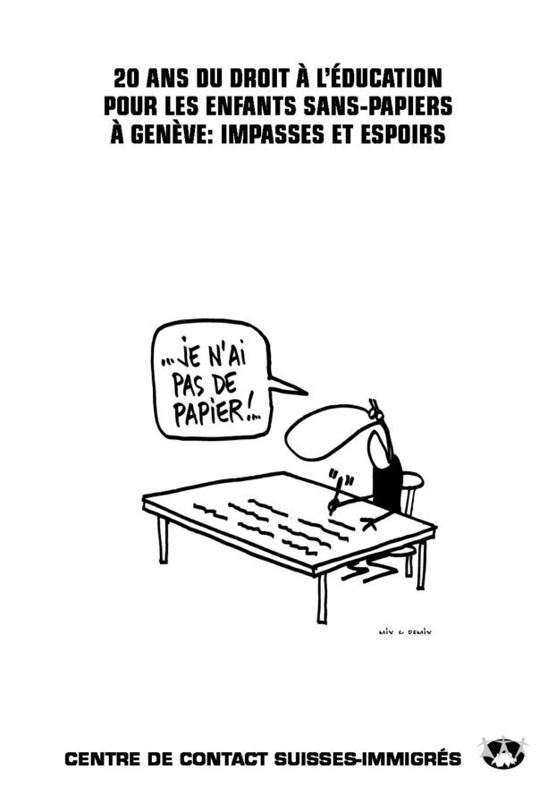 Produite par le CCSI en 2011 à l’occasion des 20 ans du droit à l’éducation pour les enfants sans statut légal à Genève, cette brochure retrace la lutte menée par le CCSI pour que tous les enfants aient accès à l’école et à la formation professionnelle, quels que soient leur origine ou leur statut. Cette brochure est un complément idéal à l’exposition créée par le CCSI sur le même thème (voir ci-dessous). Pour voir le PDF de la brochure, cliquez ici.